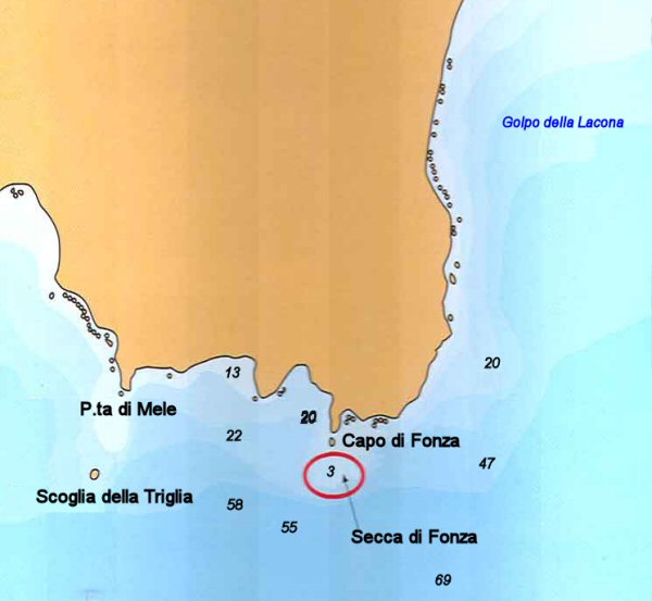 | Capo di Poro - homole | Itálie | Moře - ponořený útes | 4 km / 250° |