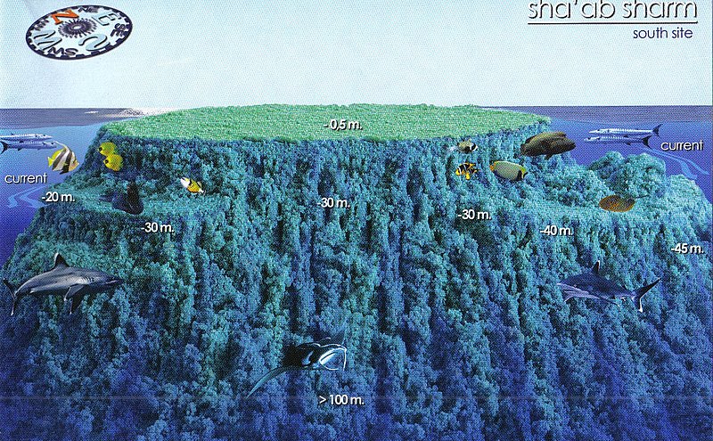 Velký útes s kolmými stěnami do velké hloubky, na jižní straně plato s hloubkou dna 20 - 35m. Poměrně častý výskyt žraloka dlouhoploutvého u hladiny, obvykle blízko ukotvené lodě. Na platu velké barracudy a trnuchy. Ideální pro drift dive, proudy obvykle od severu.