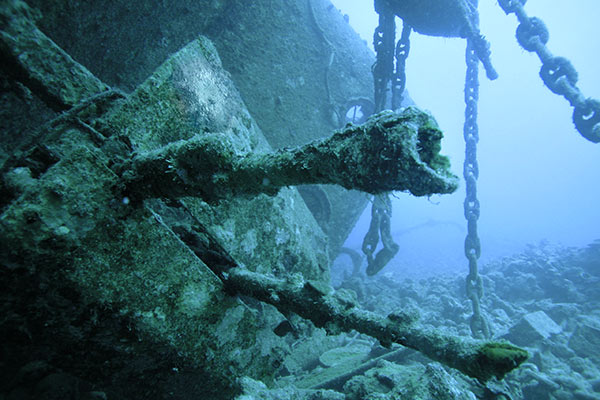 | Loď byla vyvázaná na laně vedoucím na šroub. Kolem vraku minolovky (menší fishball). Druhá loď (Hassab Allah) je od zádi vyvázána linkou. Na ní perutýni, velký kanic v čistící stanici a obrovský fishball. (Zapsal Šraier Zdeněk) | ||||||