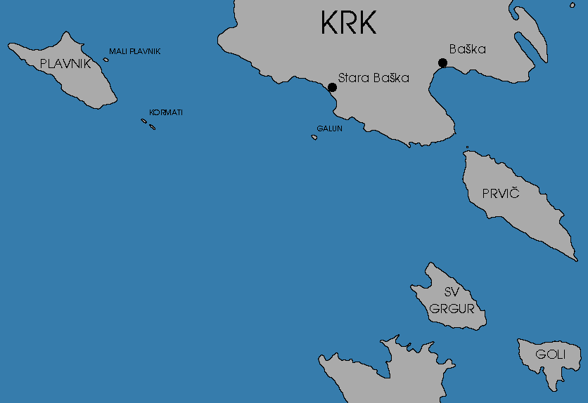 Nejbližší lokalita - ostrůvek je přímo proti Staré Bašce, ani ne 2 NM vzdálený. Je tu k vidění amforové pole. Na písku v hloubce 16-25 m leží docela zachovalé velké střepy amfor. Už je to asi dost probrané, takže jsem neviděl ani jedno hrdlo, pouze dna. U hladiny jsou hezké příbojové jeskyňky.