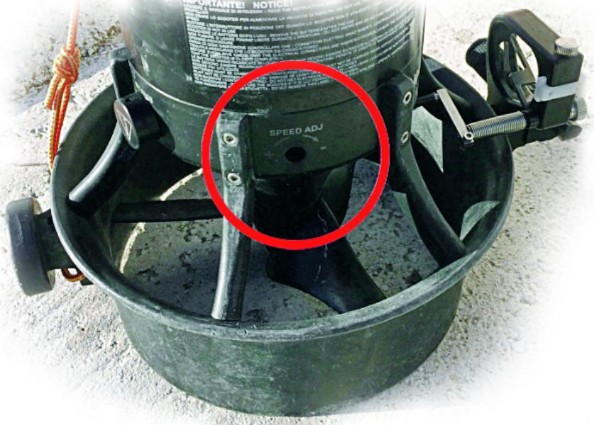 Vlasce zamotané v mechanismu vrtule. Pokud to konstrukce umožňuje, odšroubujeme vrtuli ve vodě a vlasec odřežeme.