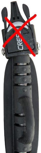 Pokud by při vylézání z vody hrozil pád, je lepší se přidržovat a mít volné ruce. Ploutve můžeme nechat na místě a později se pro ně vrátit. Další možností je ploutve zavěsit na bok. Odepneme manometr, na karabinu zavěsíme ploutve a připneme ji zpět na d-kroužek. Tlak na hadici je zanedbatelný vzhledem k její odolnosti.