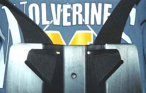 Bohužel jsem nikde nesehnal lepší fotografie znázorňující protažení popruhu zádovou deskou. Pro tento případ jsem použil zvětšené obrázky zveřejněné v Doing It Right.