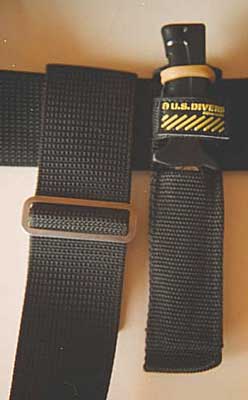 Já sám používám malý nůž US DIVERS Ranger. Pochva udržuje nůž na svém místě a zabraňuje vypadnutí nože (proto jsem si udělal z gumy smyčku, která ještě nůž přidržuje. Pochva je vyrobena z velmi odolné nylonové tkaniny či popruhu. Nůž by měl být stále čistý (bez rzi). Umísťuje se na pásový popruh vlevo hned vedle mezinožního popruhu.