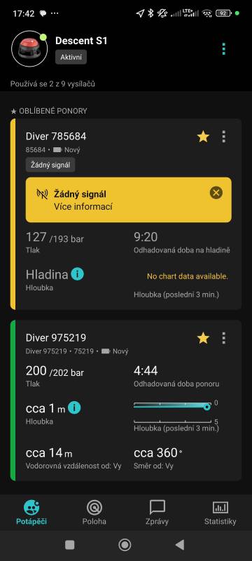 Překvapilo mě, že sondy si vyžádaly při párování aktualizaci firmware. Je třeba nejdřív zaktualizovat aplikaci, pak počítače, a nakonec sondy i bójku. Od každého potápěče stačí spárovat s bójí jen jednu sondu, aby bylo možné komunikovat, i když jich má uživatel několik. Podporovány nejsou modely x30, které patří do nižší cenové kategorie a sondy nepodporují vůbec. Aktuálně jsou podporovány pouze modely Mk3i a x50i. Bóje má svoji wifi, na kterou se připojuje mobilní zařízení. Počítače naopak přidáváte pomocí Bluetooth bóje.