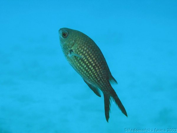 Popis: Zploštělá ryba s výrazně vykrojenou ocasní poutví připomínající ocas vlaštovky. Zbarvení je u dospělých ryb tmavě hnědé, ale mladé ryby jsou kobaltově modré. Biotop: Nad skalnatým dnem v blízkosti pobřeží. Biologie: Zdržuje se ve větších hejnech. Samci se sami starají o snůšku jiker. Je to jediný zástupce této čeledi ve Středozemním moři. Hlavní těžiště výskytu čeledi spadá do tropických moří.